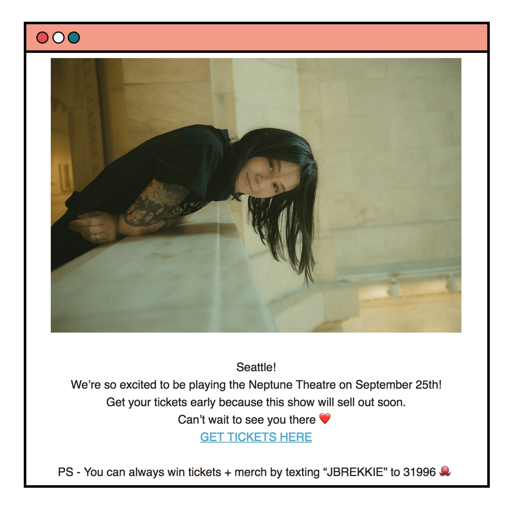 Here’s a great example of this kind of email from Japanese Breakfast.