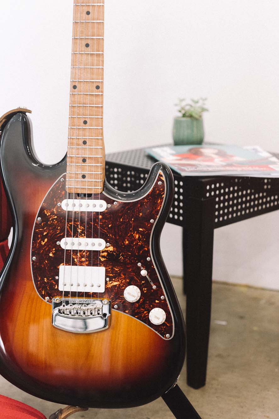 When you pick up the Ernie Ball Cutlass RS HSS it looks like a Strat with two single coils, a humbucker pickup, whammy bar, and two knobs (volume and tone). And to be honest—that was the extent of my knowledge. But when I played it, I enjoyed going through the 5 pickup settings, exploring the diversity within the tone knob and getting the most out of each “tone zone”. I noticed a battery input on the back of the guitar and wondered, why the heck is that there? Then I did some research to find out what’s happening in the world of Ernie Ball guitars.