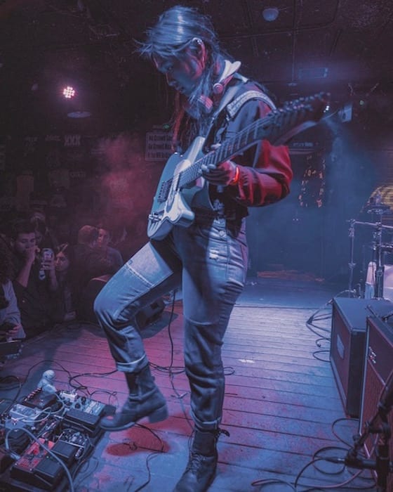 When she’s not playing guitar, Young also makes visual art (including the artwork for all of her releases). This gives her a way to fully express each collection of music the way she sees it. She also paints guitars for clients and has even painted her own custom Stenberg guitar body with vibrant reds, blues, and floral patterns. “I usually have a form people fill out before they mail their guitar bodies to me,” she says. “Then I send them a sketch and when they approve I start painting. I usually livestream everything so people can watch the process!”